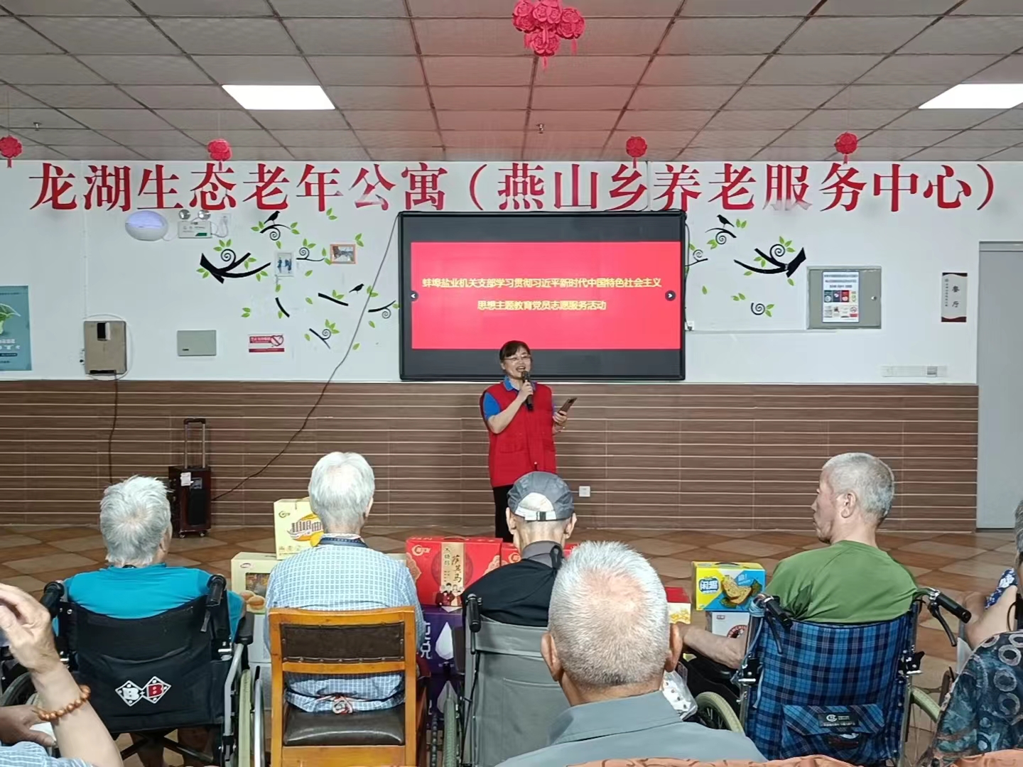 為深入推進(jìn)學(xué)習(xí)貫徹習(xí)近平新時(shí)代中國(guó)特色社會(huì)主義思想主題教育,傳承和弘揚(yáng)中華民族尊老敬老的傳統(tǒng)美德,營(yíng)造愛(ài)老助老的良好社會(huì)氛圍,7月29日上午,蚌埠市鹽業(yè)公司機(jī)關(guān)黨支部組織黨員志愿者到龍湖生態(tài)老年公寓開(kāi)展主題教育黨員志愿服務(wù)活動(dòng)。