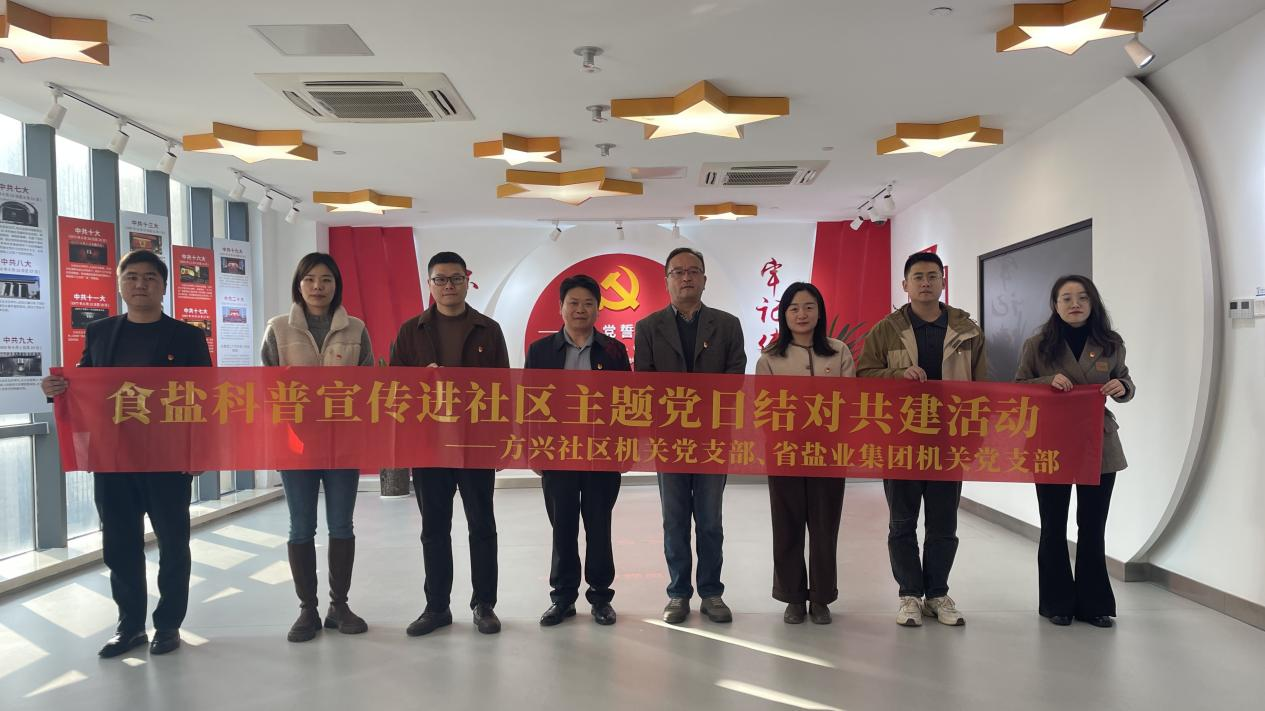 11月22日,省鹽業(yè)集團(tuán)機(jī)關(guān)黨支部攜手合肥市鹽業(yè)公司走進(jìn)方興社區(qū),開(kāi)展食鹽科普進(jìn)社區(qū)主題黨日結(jié)對(duì)共建活動(dòng)。方興社區(qū)、居民區(qū)工作人員共40余人參加活動(dòng)。