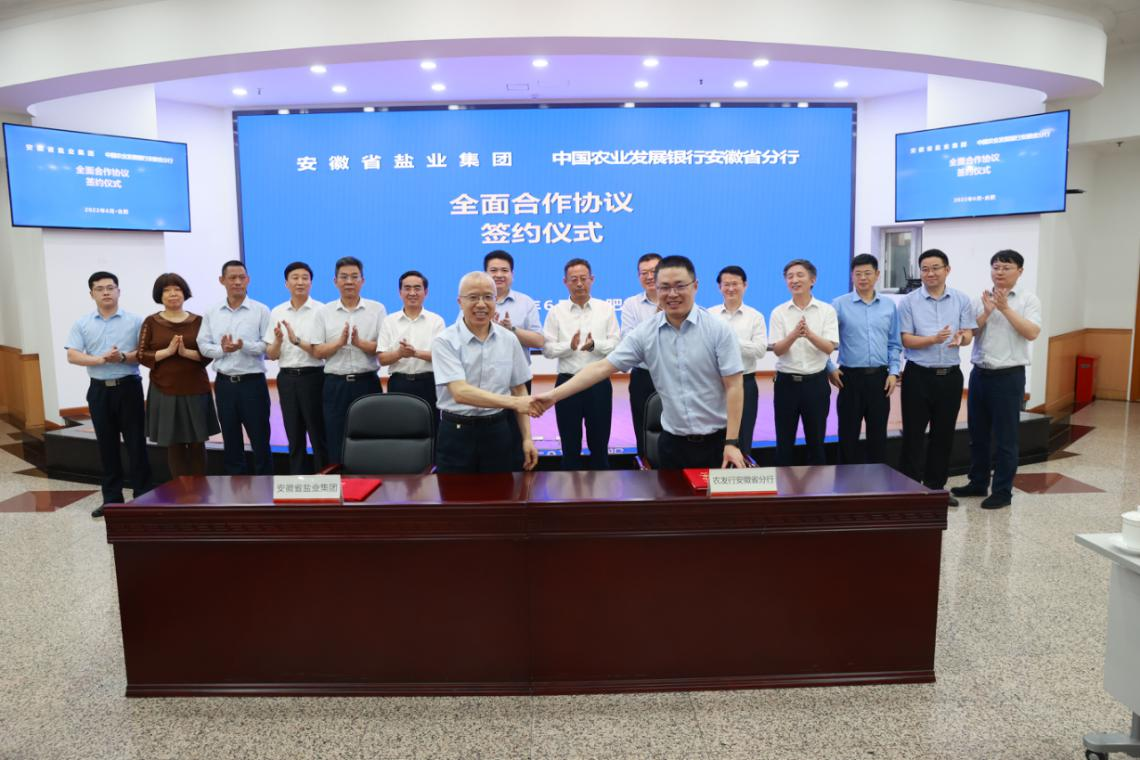 6月1日下午,省鹽業(yè)集團(tuán)公司與中國農(nóng)業(yè)發(fā)展銀行安徽省分行簽訂戰(zhàn)略合作協(xié)議。省鹽業(yè)集團(tuán)公司黨委書記、董事長羅太忠,黨委副書記、總經(jīng)理、董事王思軍,農(nóng)發(fā)行安徽省分行黨委書記、行長張寶江出席簽約儀式。省鹽業(yè)集團(tuán)公司黨委委員、副總經(jīng)理余保山,農(nóng)發(fā)行安徽省分行黨委委員、副行長金雷代表雙方簽署合作協(xié)議。