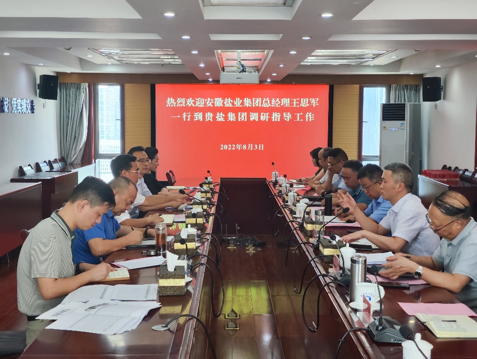 8月3日,王思軍一行拜訪了貴鹽集團,并與貴鹽集團黨委書記、董事長任建生,黨委副書記、副董事長、總經(jīng)理梅桂等座談交流。期間,王思軍介紹了省鹽業(yè)集團的經(jīng)營與改革發(fā)展等情況,并重點介紹了發(fā)展生態(tài)環(huán)保以及健康養(yǎng)老等新興產(chǎn)業(yè)的做法,表達(dá)了在環(huán)保治污、健康養(yǎng)老、鄉(xiāng)村振興以及現(xiàn)代農(nóng)業(yè)等領(lǐng)域進一步加強合作的意愿。王奇介紹了鹽改以來在穩(wěn)市場、調(diào)結(jié)構(gòu)、促轉(zhuǎn)型等方面的經(jīng)驗和做法。任建生對省鹽業(yè)集團近年來在推動改革轉(zhuǎn)型方面的嘗試表示了敬佩,認(rèn)為有很多值得學(xué)習(xí)的地方,并表示希望雙方進一步加強了解,互通有無,加快推動合作落地。