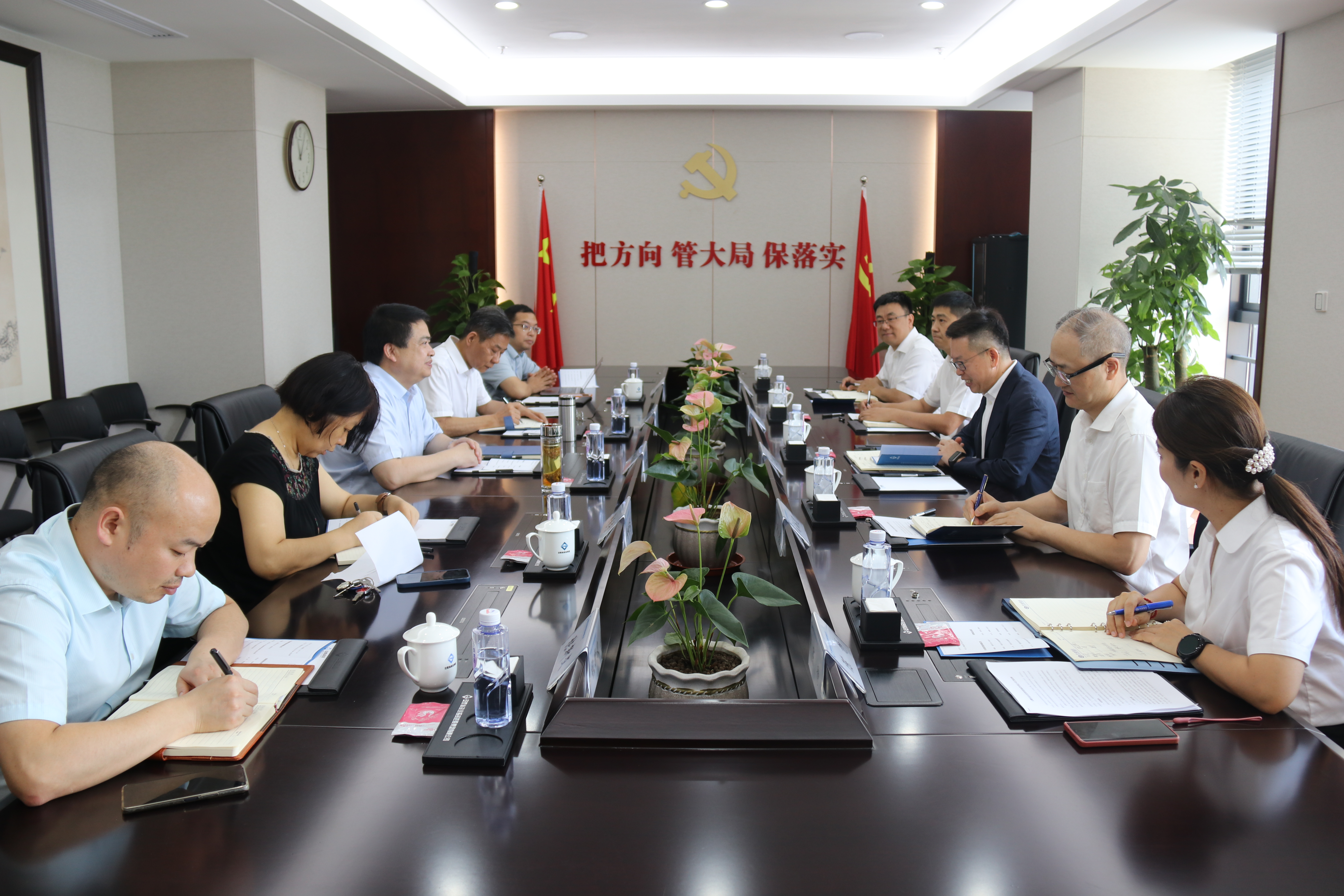 羅太忠對(duì)王惠斌一行來訪表示歡迎,介紹了集團(tuán)生產(chǎn)經(jīng)營和轉(zhuǎn)型組建省生態(tài)環(huán)境產(chǎn)業(yè)集團(tuán)基本情況。他表示,企業(yè)的發(fā)展離不開銀行的支持,興業(yè)銀行的“綠色金融”理念與省生態(tài)環(huán)境產(chǎn)業(yè)集團(tuán)主責(zé)主業(yè)高度契合,雙方合作空間十分廣闊,希望雙方加強(qiáng)互動(dòng)交流,在債券發(fā)行、項(xiàng)目投資、資產(chǎn)管理以及貸款授信等方面開展全方位合作,實(shí)現(xiàn)共贏發(fā)展。