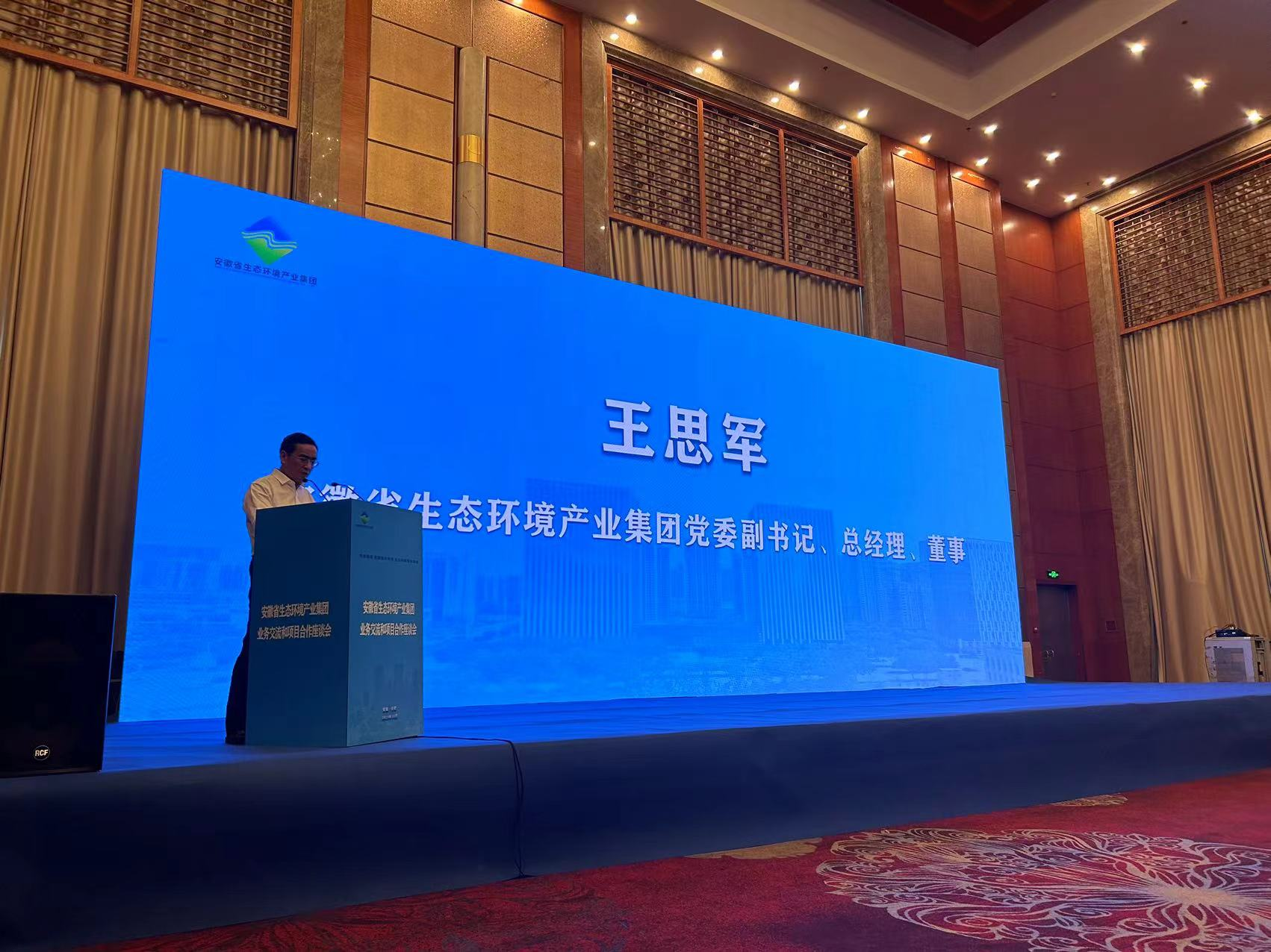 10月31日,安徽省生態(tài)環(huán)境產(chǎn)業(yè)集團(tuán)業(yè)務(wù)交流和項(xiàng)目合作座談會(huì)在合肥召開。安徽省生態(tài)環(huán)境集團(tuán)黨委副書記、總經(jīng)理、董事王思軍主持會(huì)議并致辭,集團(tuán)領(lǐng)導(dǎo)余保山、李明、王奇、繆磊、戴斌出席會(huì)議。會(huì)議由安徽省生態(tài)環(huán)境集團(tuán)主辦,安徽省環(huán)保產(chǎn)業(yè)協(xié)會(huì)和安徽省節(jié)能協(xié)會(huì)協(xié)辦。省內(nèi)外節(jié)能降碳、資源循環(huán)利用、生態(tài)保護(hù)修復(fù)等領(lǐng)域頭部企業(yè)負(fù)責(zé)人近200人參會(huì)。