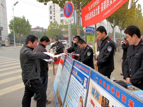 阜陽(yáng)市鹽務(wù)局高度重視此次宣傳活動(dòng),結(jié)合自身業(yè)務(wù)范疇,精心準(zhǔn)備大量法制宣傳資料。早晨7時(shí),天氣陰冷,寒風(fēng)勁吹,我局鹽政執(zhí)法人員在副局長(zhǎng)王道亞的帶領(lǐng)下,早早地布置好法制宣傳臺(tái)。在活動(dòng)現(xiàn)場(chǎng)王道亞親自向過(guò)往群眾宣傳鹽政法律法規(guī)知識(shí),宣傳消費(fèi)者、經(jīng)營(yíng)者的權(quán)利和義務(wù),宣傳消費(fèi)者如何依法維權(quán);進(jìn)行了假冒偽劣食鹽展示和鑒別;開(kāi)展了涉鹽咨詢、受理投訴舉報(bào)。此次宣傳共發(fā)放宣傳資料500余份,接受群眾咨詢200余人次?;顒?dòng)現(xiàn)場(chǎng)布置了咨詢展臺(tái),擺放宣傳圖板10塊、宣傳展架3個(gè)、懸掛 2條生動(dòng)主題橫幅,展示了近期查獲的部分劣質(zhì)私鹽樣品,教市民辨別真假碘鹽的活動(dòng),咨詢臺(tái)前觀看宣傳圖版和前來(lái)咨詢的群眾絡(luò)繹不絕,受到了親自趕赴現(xiàn)場(chǎng)慰問(wèn)的市人大常委副主任李新才、市政府副市長(zhǎng)黃珍、市政協(xié)副主席張永俠、市委宣傳部、市司法局和市依法治市領(lǐng)導(dǎo)小組辦公室有關(guān)領(lǐng)導(dǎo)以及廣大群眾的一致好評(píng)。