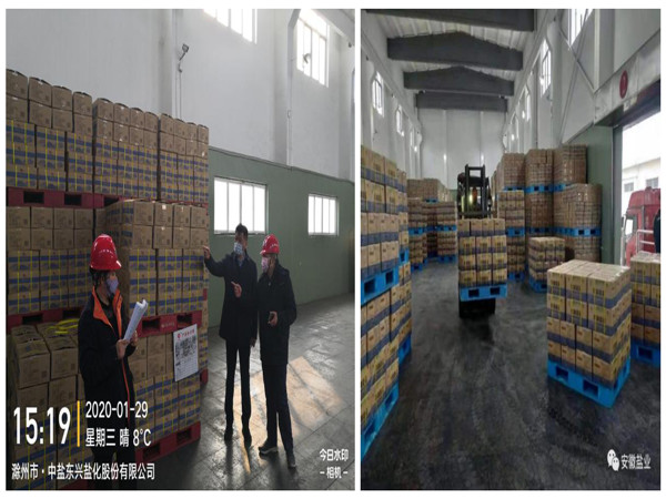 疫情如火,責(zé)任如山,充足的庫存是保障食鹽市場穩(wěn)定供應(yīng)的前提。為確保全省食鹽市場供應(yīng)不斷檔不脫銷,安徽鹽業(yè)發(fā)展公司積極響應(yīng)省鹽業(yè)集團公司號召,未雨綢繆,早安排早部署。在中鹽東興鹽化股份有限公司的積極支持下,克服運輸緊張、雨雪天氣、交通管制等不便因素,積極組織食鹽生產(chǎn)和調(diào)運。同時積極協(xié)調(diào)安徽省新型冠狀病毒肺炎疫情防控應(yīng)急指揮部,緊急辦理了應(yīng)急物資調(diào)撥專車通行證,為疫情時期食鹽運輸開辟了綠色通道,有力保障了民食工需。