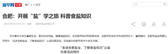 新華網(wǎng)安徽等多家媒體報(bào)道合肥食鹽科普游