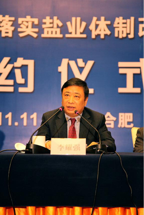 安徽省鹽業(yè)總公司黨委書(shū)記、總經(jīng)理詹先豪在會(huì)上發(fā)言