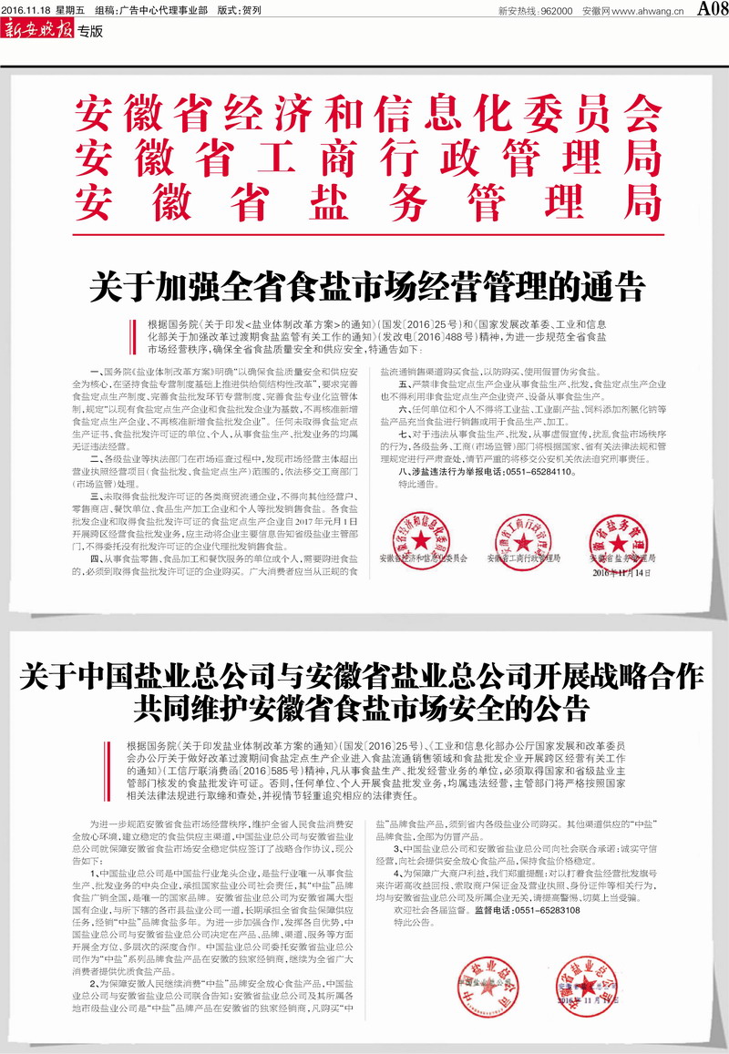 安徽省鹽務局涉鹽違法舉報電話是0551-65284110,歡迎廣大群眾監(jiān)督舉報。
