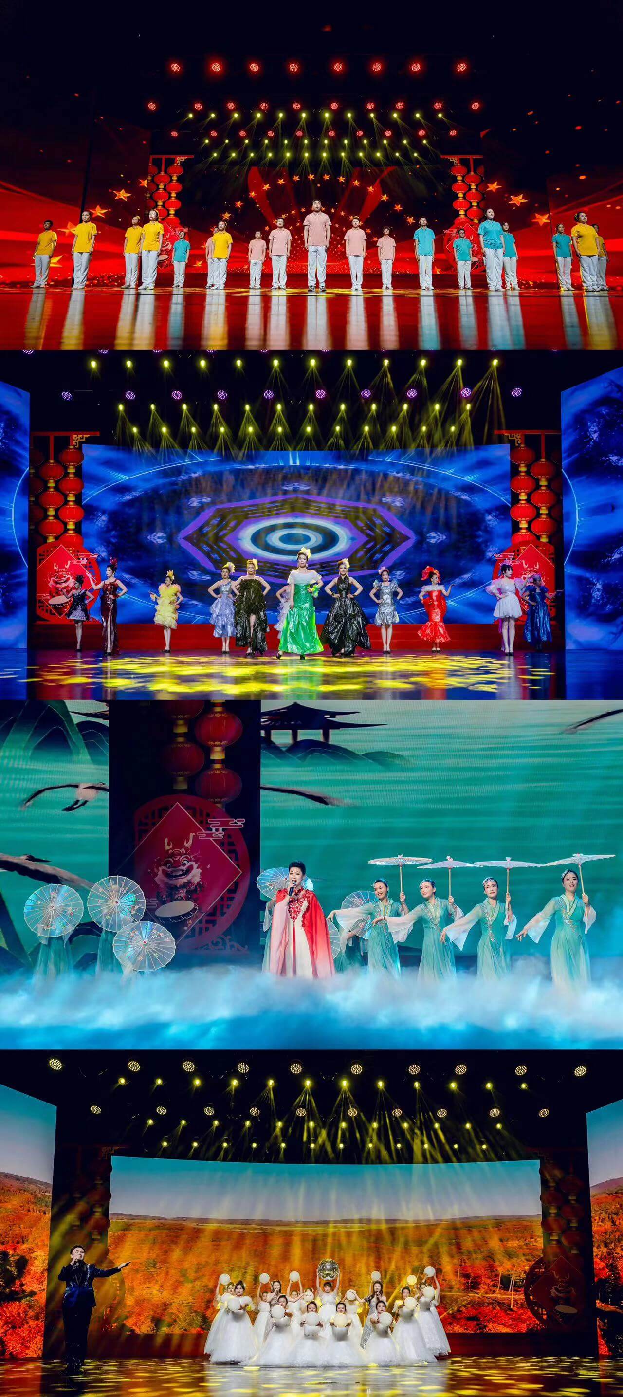 演出精彩紛呈,高潮迭起,歌聲、樂聲、掌聲烘托出熱烈的喜慶氛圍。最后,聯(lián)歡會(huì)在全場(chǎng)同唱《再一次出發(fā)》歌聲中落下帷幕。