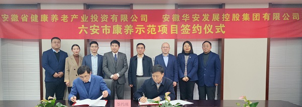 省健康養(yǎng)老產(chǎn)業(yè)投資有限公司、安徽華安發(fā)展控股集團相關(guān)負責人見證簽約儀式。