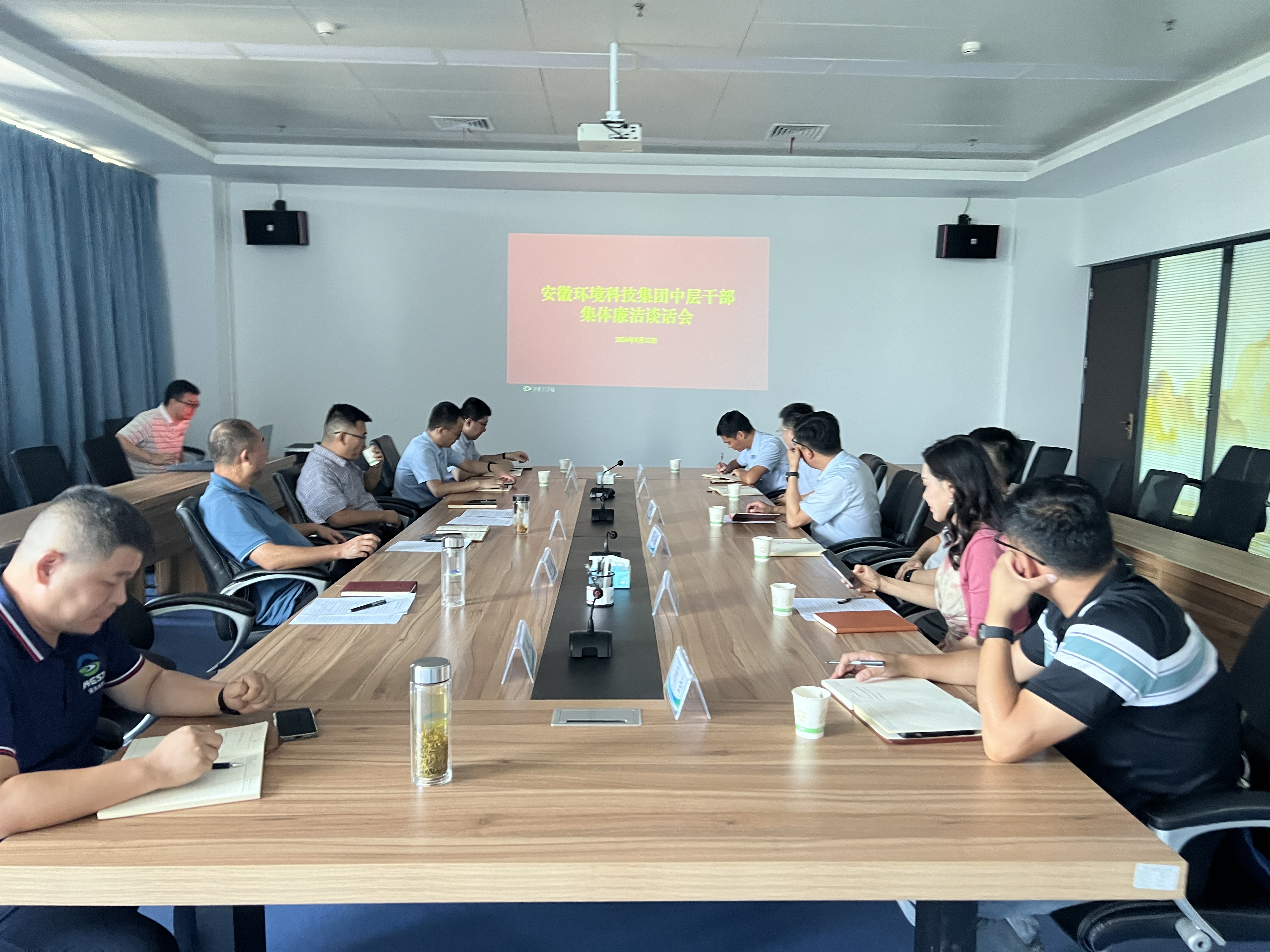 8月12日,環(huán)境科技集團黨委副書記韓冰對2024年1月以來招聘、調(diào)整、進一步使用、提拔的新任中層管理人員開展集體廉潔談話,環(huán)境科技集團副總經(jīng)理朱濤主持會議。