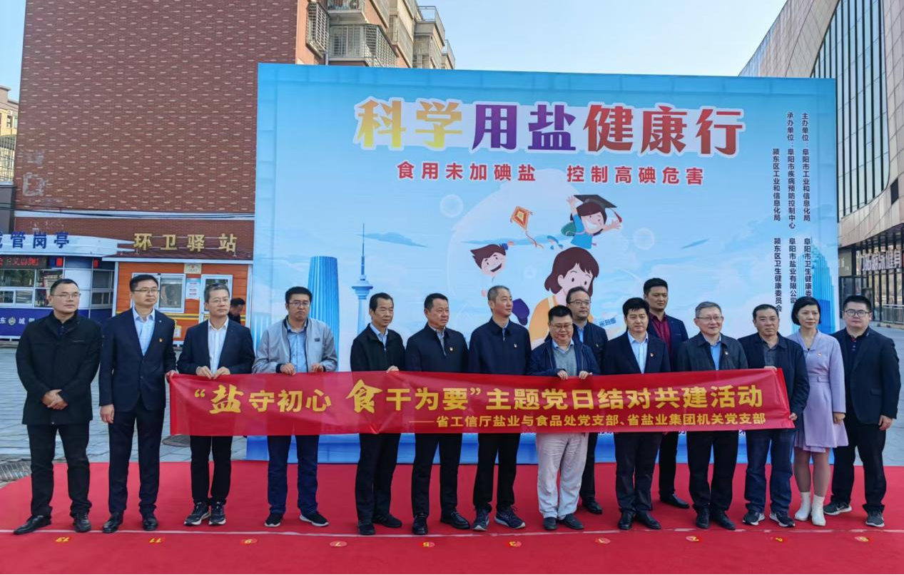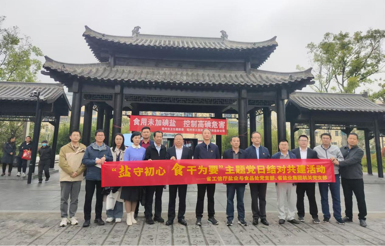 共建雙方一行先后參與了亳州市、阜陽市“科學用鹽健康行”活動?;顒蝇F(xiàn)場通過播放科普視頻、發(fā)放宣傳單頁、面對面講解、觀眾互動等方式進行高碘危害防治知識宣傳,參與群眾反響熱烈,體現(xiàn)了廣大消費者對健康用鹽的重視。亳州市、阜陽市鹽業(yè)公司負責人向省工信廳鹽業(yè)與食品處黨支部一行介紹了本地區(qū)未加碘食鹽供應情況。