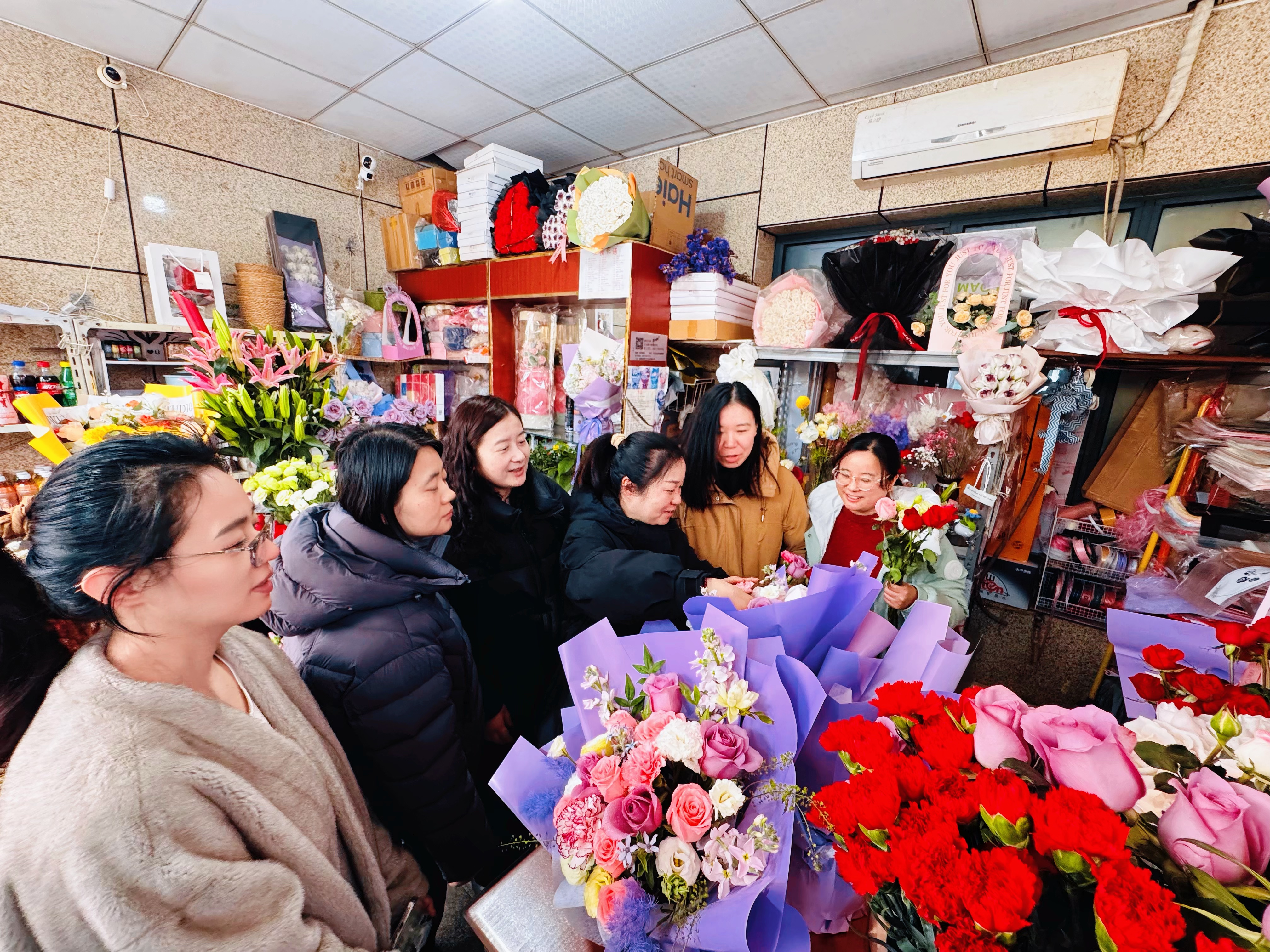 在專業(yè)花藝師指導(dǎo)下,女職工們認真學(xué)習(xí)花材識別、色彩搭配與造型設(shè)計,親手修剪枝葉、精心構(gòu)思作品。玫瑰、康乃馨、桔梗等花材在指尖流轉(zhuǎn)間巧妙組合,化作一件件錯落有致、意蘊豐富的花藝佳作?;顒蝇F(xiàn)場花香馥郁、笑語盈盈,大家在沉浸式體驗中舒緩壓力、陶冶情操,也增進了彼此交流,為共同奮斗的歲月留下了一段美好回憶。